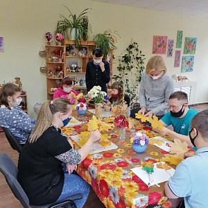 В отделении обеспечения дневного пребывания для инвалидов ГУ «Солигорский РТЦСОН» активно идёт подготовка к празднованию Дня матери. Неделя матери началась с оформления выставки творческих работ «Все краски жизни для любимой мамы», а также состоялся мастер-класс «Осенний сюрприз для любимой мамы» - изготовление цветочных букетов из осенних листьев и плодов.