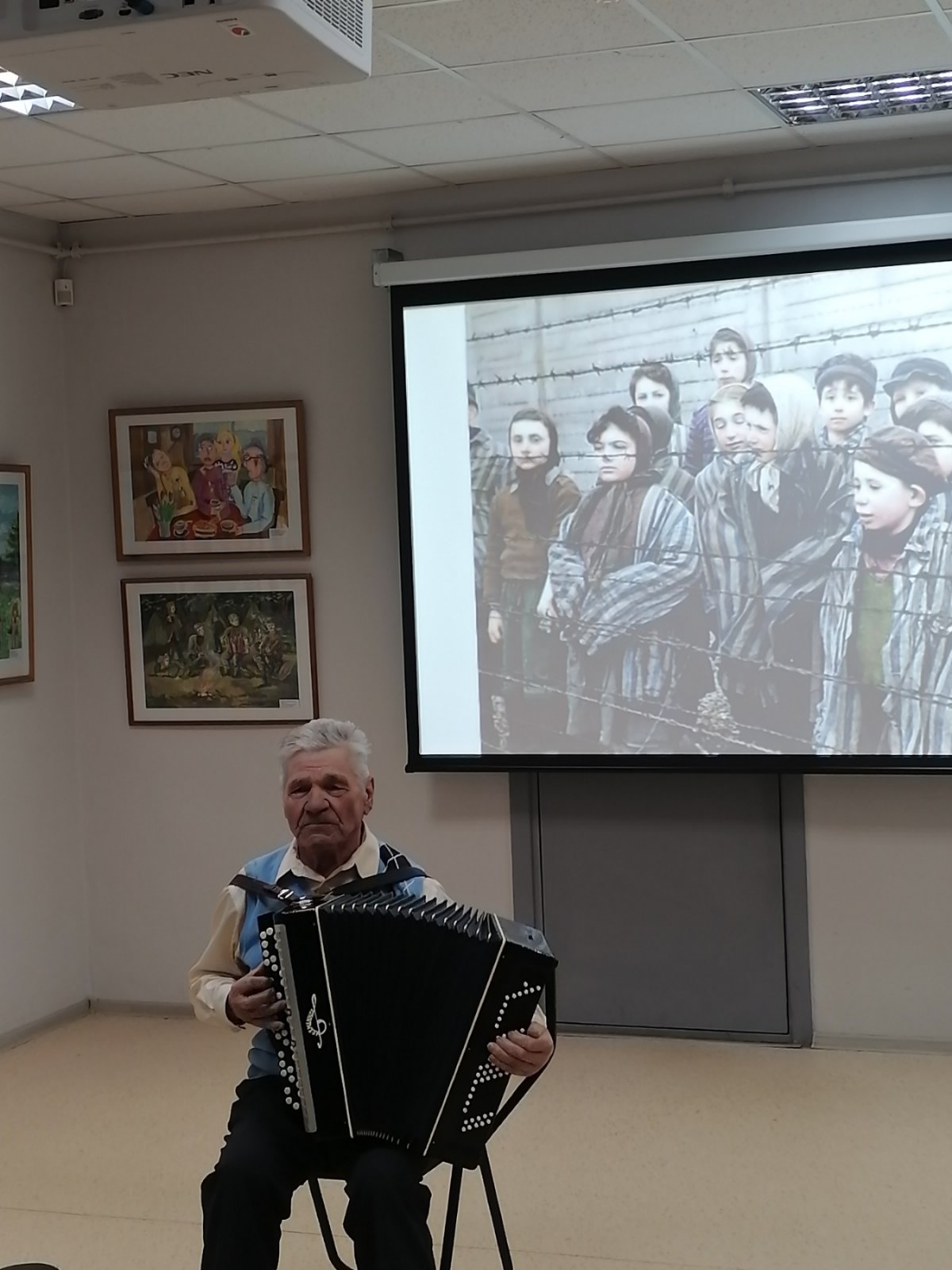 На мероприятии присутствовали те, кто прошёл сквозь ужасы фашистских концлагерей: Пехтерева Е.М., Полуян М.С., Ахремчик Н.С., граждане пожилого возраста и представители молодого поколения.