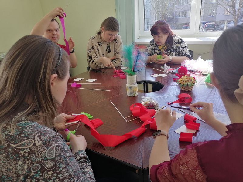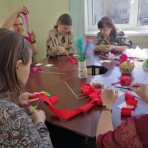 Студентка Университета третьего возраста Солигорского ТЦСОН Черкашенко Нина Гавриловна провела мастер-класс по изготовлению цветочных композиций из атласных нитей для творческих молодых инвалидов отделения ОДПИ. Ребята увлечённо осваивали ещё одно новое для них направление в искусстве.